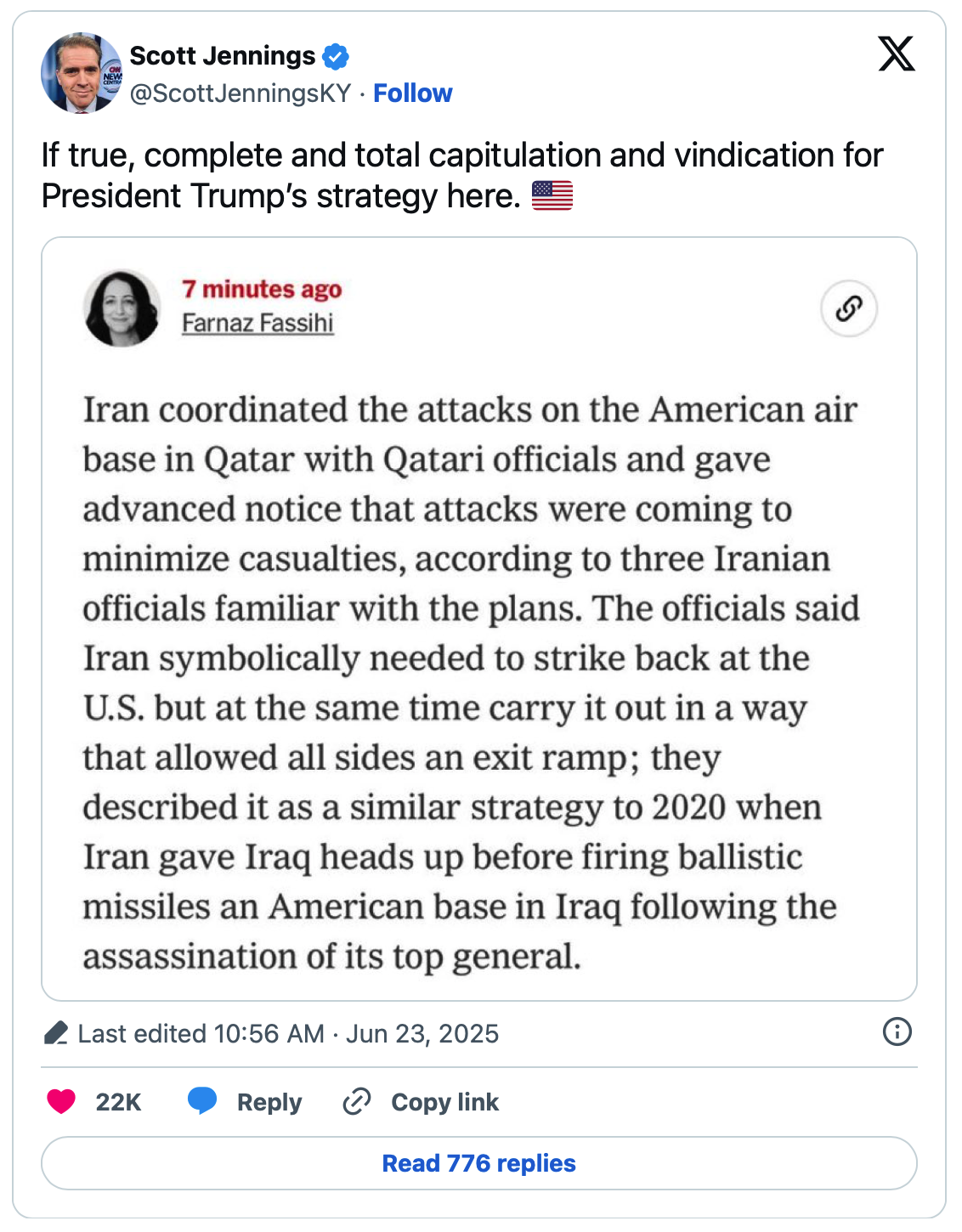 The good news, as Scott Jennings has aptly pointed out, is that this essentially represents a “complete and total capitulation” by Iran…